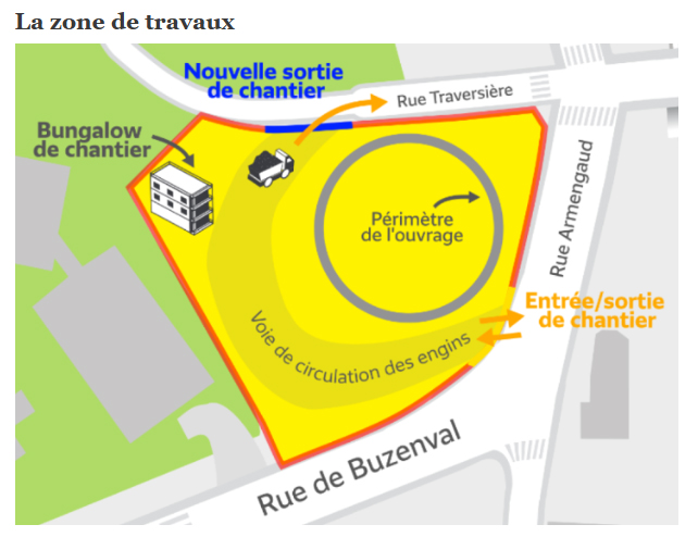 Dans un premier temps, les équipes retirent les installations mises en place pour la réalisation des parois moulées. Ensuite, la zone de travaux sera réaménagée pour créer une voie de circulation des engins, ainsi qu’une nouvelle sortie de chantier au niveau de la rue Traversière. Enfin, des bungalows seront installés à partir du 26 janvier pour accuellir les compagnons du chantier.