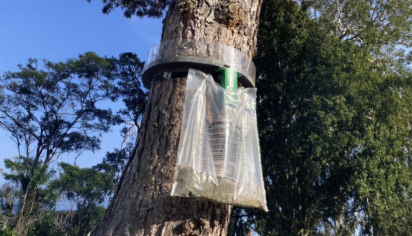Le dispositif sert à éviter qu’elles arrivent au sol (la ou elles partent s'enterrer en fonction du stade larvaire), là où les personnes et les animaux peuvent les toucher.
