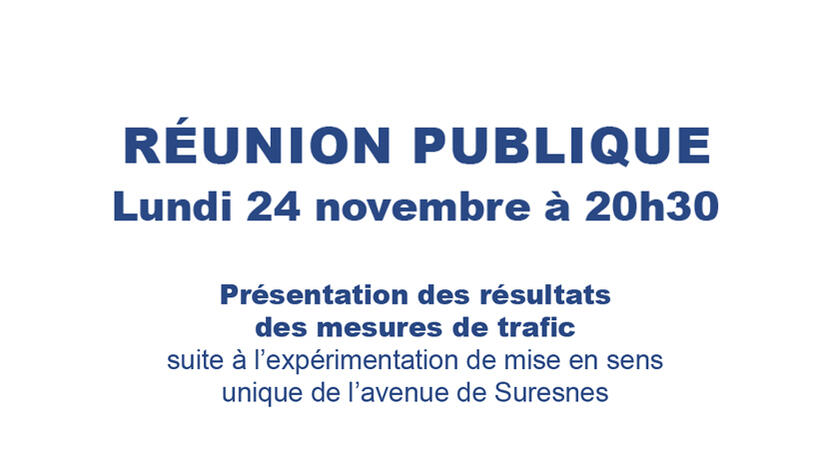Ces résultats seront présentés lors d'une réunion publique organisée le 24 novembre à 20h30 à l’école élémentaire des Coteaux, (82, boulevard Senard -entrée par le mail des Coteaux)