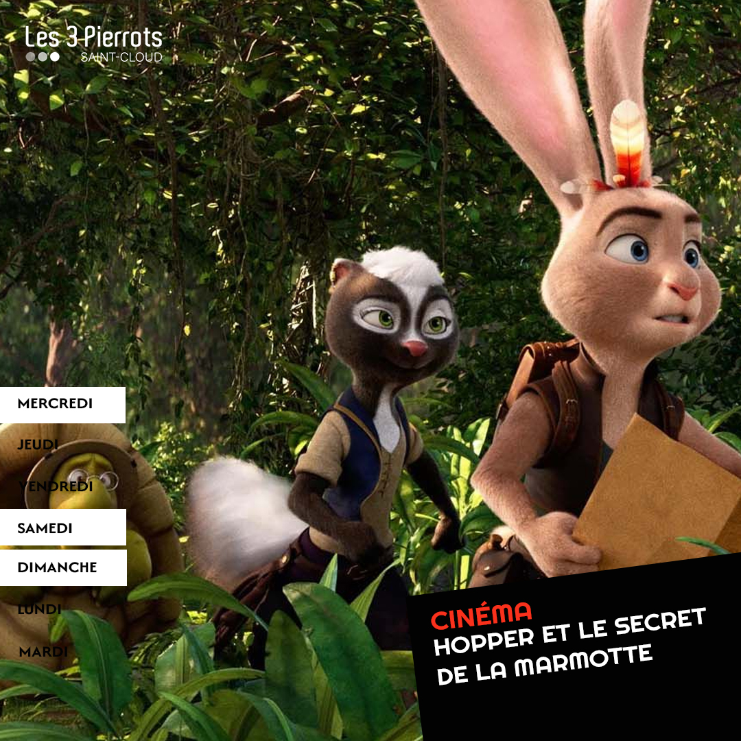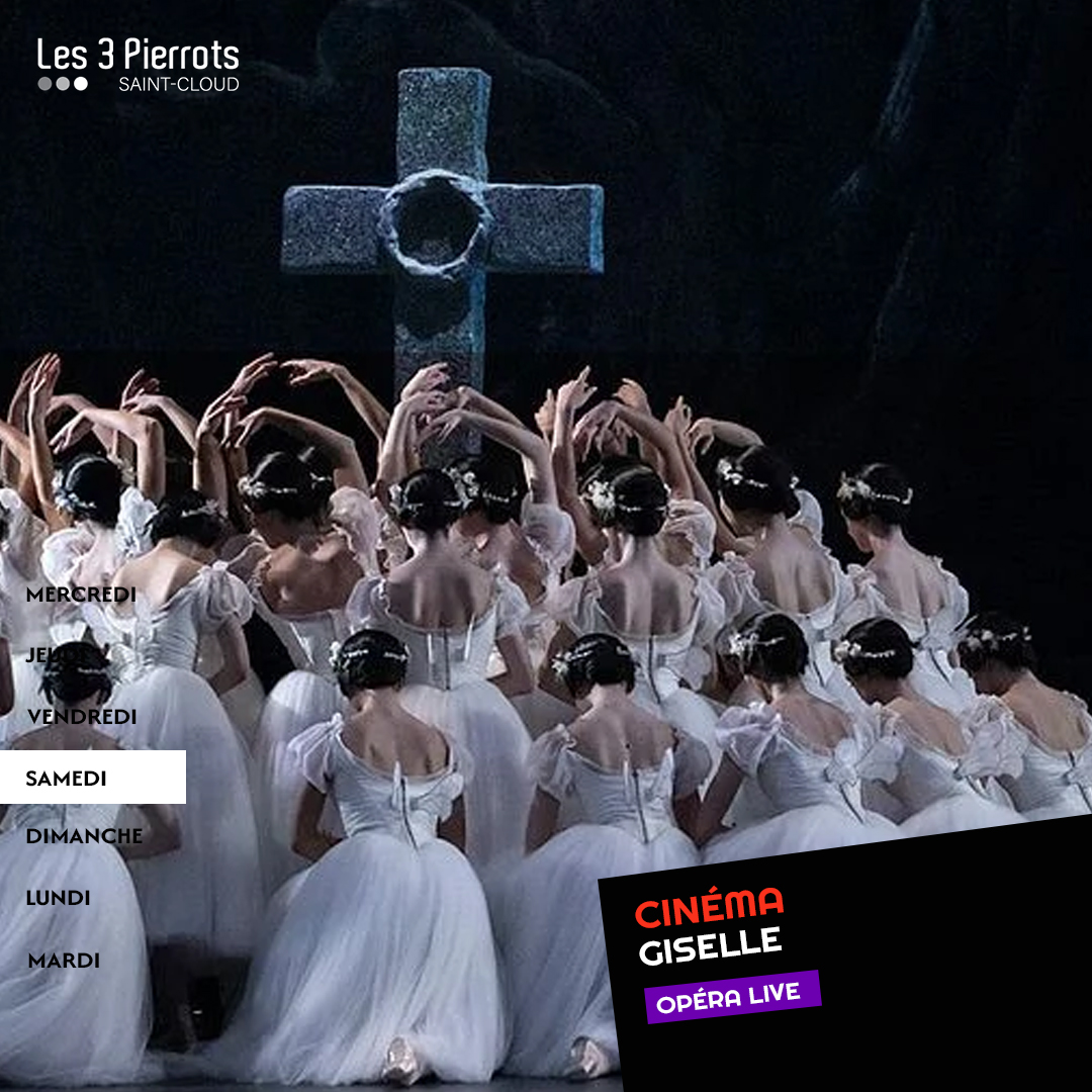 26 nov 02 déc Du Mercredi 26 novembre 2025 au Mardi 2 décembre 2025 Culture Les 3 Pierrots VIE PRIVÉEFrance – 1h45 - Drame, Policier, ThrillerRéalisé par Rebecca ZlotowskiLilian Steiner, psychiatre reconnue, apprend la mort de l’une de ses patientes et sepersuade qu’il s’agit d’un meurtre.Mer : 20h30 | Jeu : 21h | Ven : 16h15, 21hSam : 14h15, 20h30 | Dim : 11h15, 14h, 18h30Lun : 16h15 | Mar : 14h, 16h15DOSSIER 137Mer : 16h | Jeu : 14h | Ven : 16h, 18h15, 20h45Sam : 18h15, 20h45 | Dim : 16h15, 20h45 | Lun : 14hMar : 20h30 UN POÈTE voPrix du jury – Festival de Cannes 2025Colombie, Suède Allemagne - 2hComédie dramatiqueRéalisé par Simón Mesa SotoUn poète en manque de reconnaissance, mène une existence solitaire.Ven : 18h30 | Sam : 14h | Dim : 20h30 | Lun : 20h30 HOPPER ET LE SECRET DE LA MARMOTTE À partir de 6 ansBelgique, France - 1h29 - AnimationRéalisé par Benjamin MousquetUne mystérieuse marmotte aurait le pouvoir de remonter le temps.Mer : 14h | Sam : 16h15 | Dim : 11h30, 13h45 GISELLE voFrance - 1h46 - BalletRéalisé par François RoussillonGiselle aime Albrecht qui, sous ses habits de villageois, s’avère être un duc.Opéra live Sam : 18h NOUS L’ORCHESTREAVANT-PREMIÈRE, EN PRÉSENCE DU RÉALISATEURFrance - 1h30 - DocumentaireRéalisé par Philippe BéziatPour la première fois, caméras et micros se faufilent entre les 80 musiciens de l’Orchestre de Paris.Regards documentaires Dim : 16h Tout l'agenda