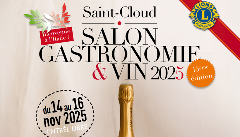 Le Lions Club de Saint-Cloud Garches Vaucresson vous donne rendez-vous les vendredi 14 de 17 h à 21 h, samedi 15 de 10 h à 20 h et dimanche 16 novembre de 10 h à 18 h au Carré pour la 15e édition du Salon de la Gastronomie et du Vin.